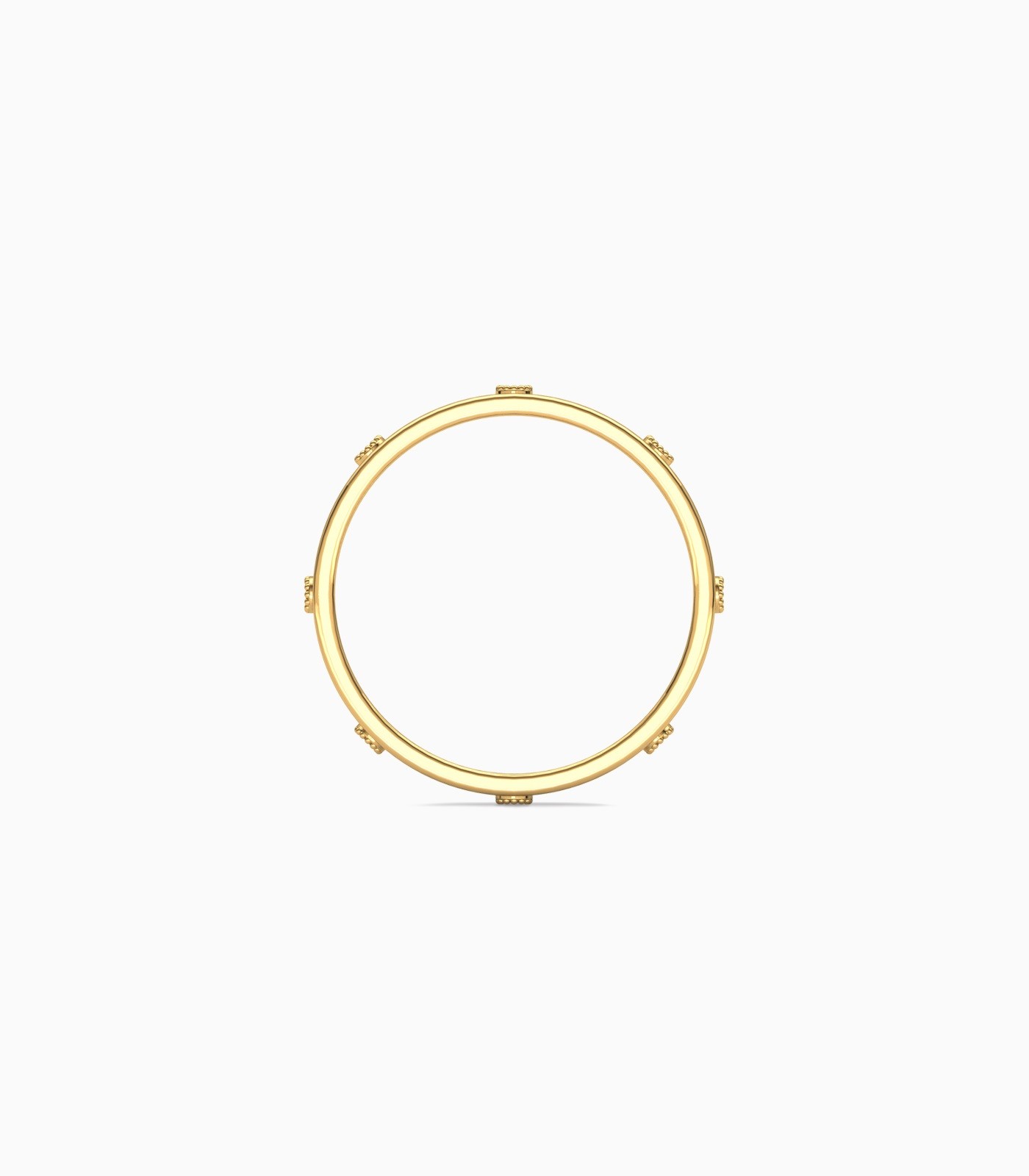 This stunning ring features solid 18k gold double bands that make the ring everlasting, while the twist of tiny sparkling flowers provides a feminine touch. A truly glorious ring that will steal hearts every time you put it on.