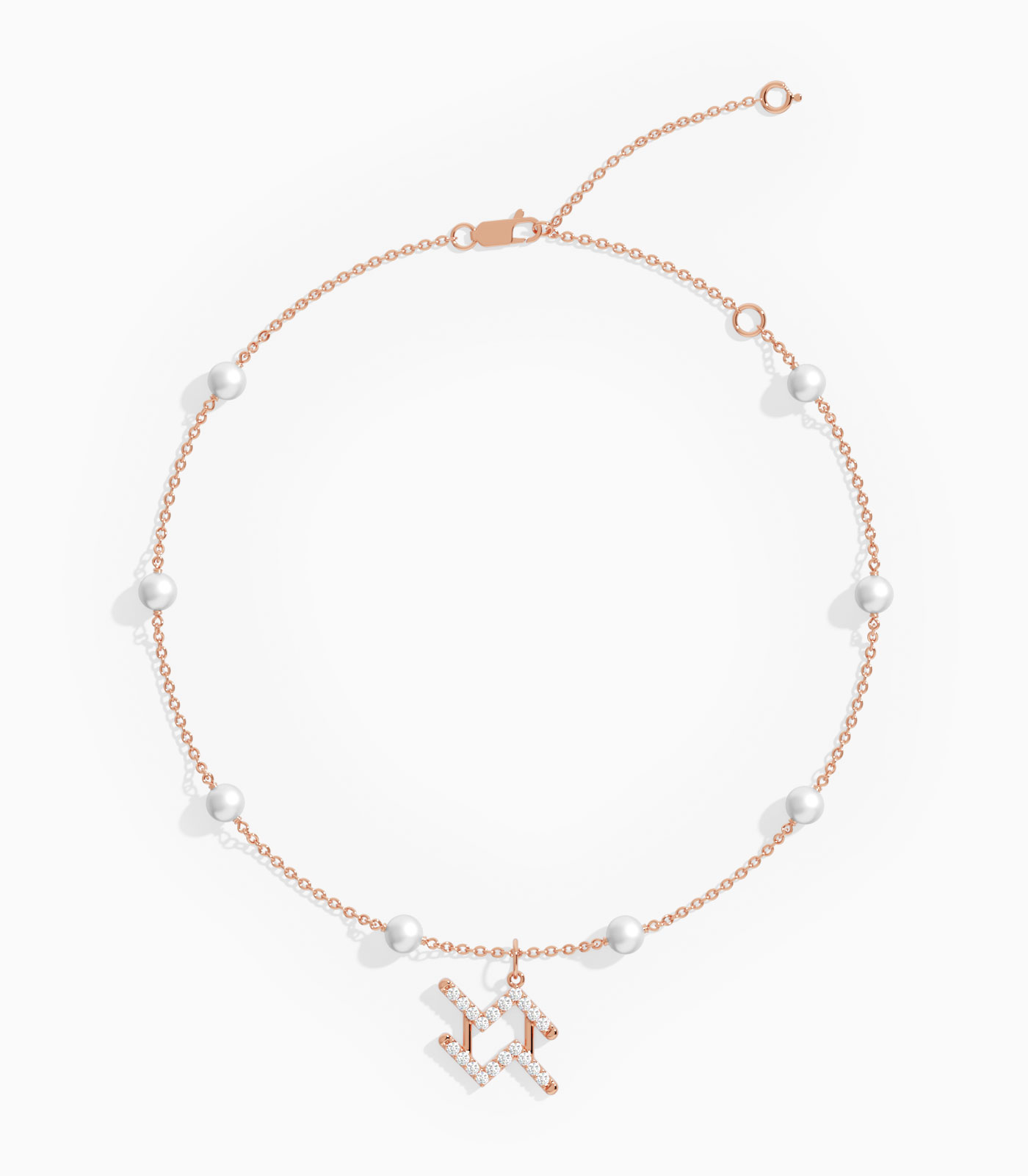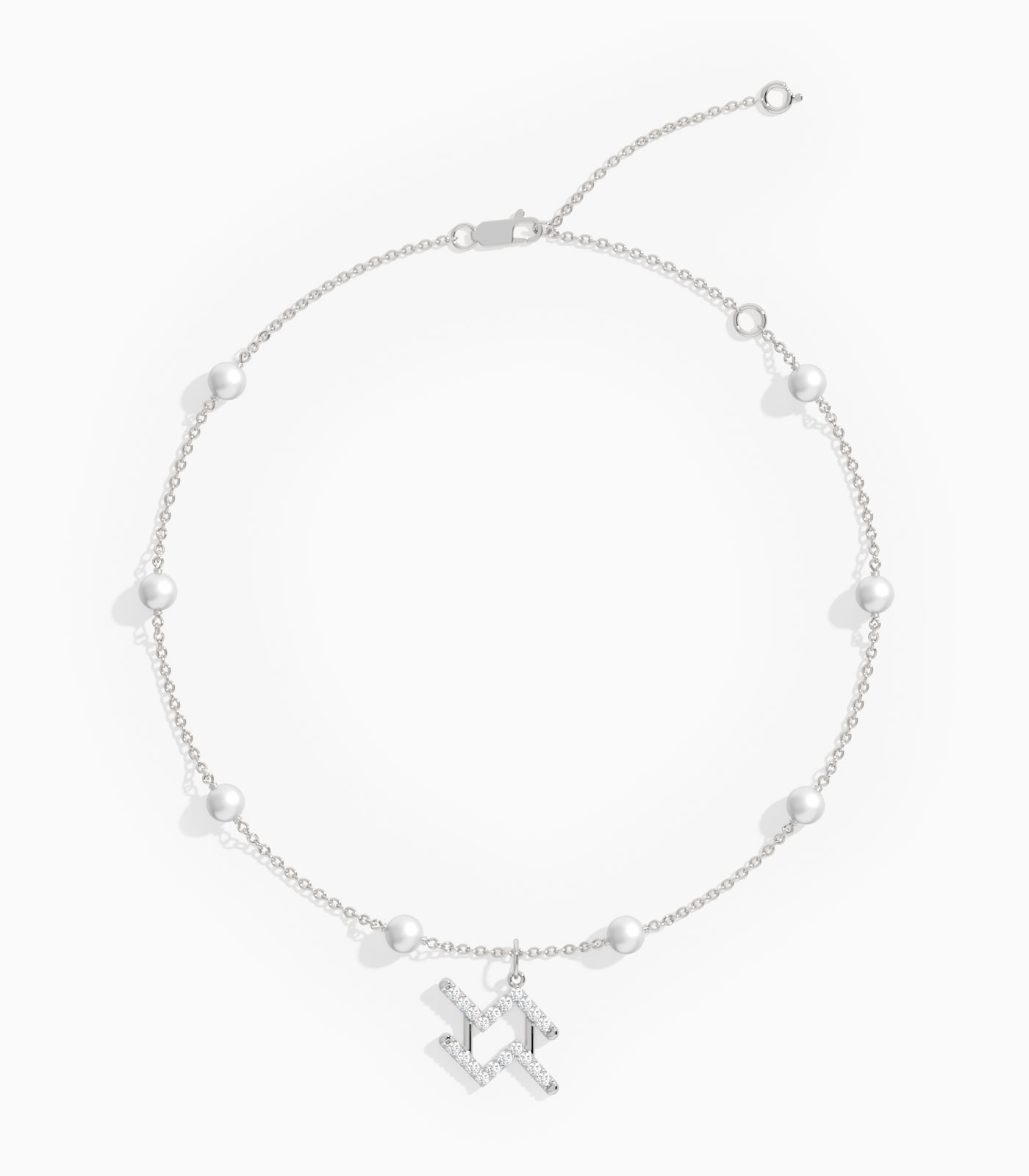 Aquarius Zodiac Anklet with Diamonds and Pearls