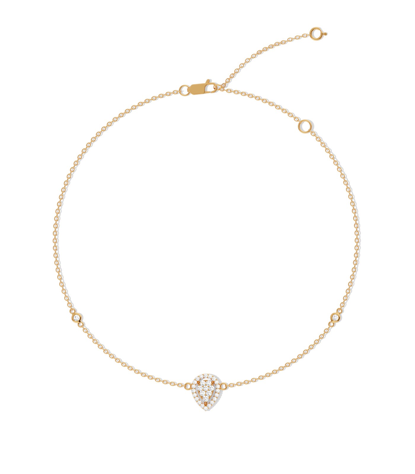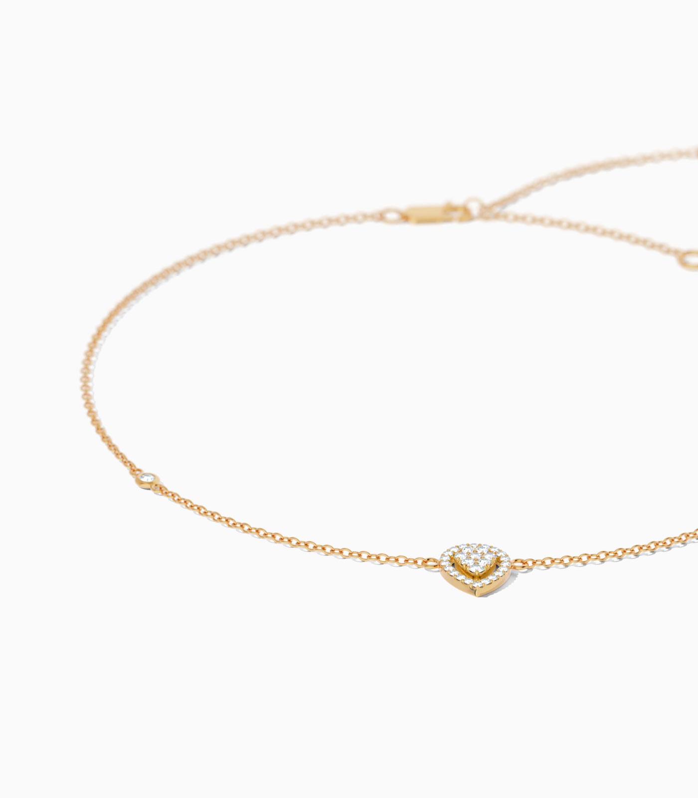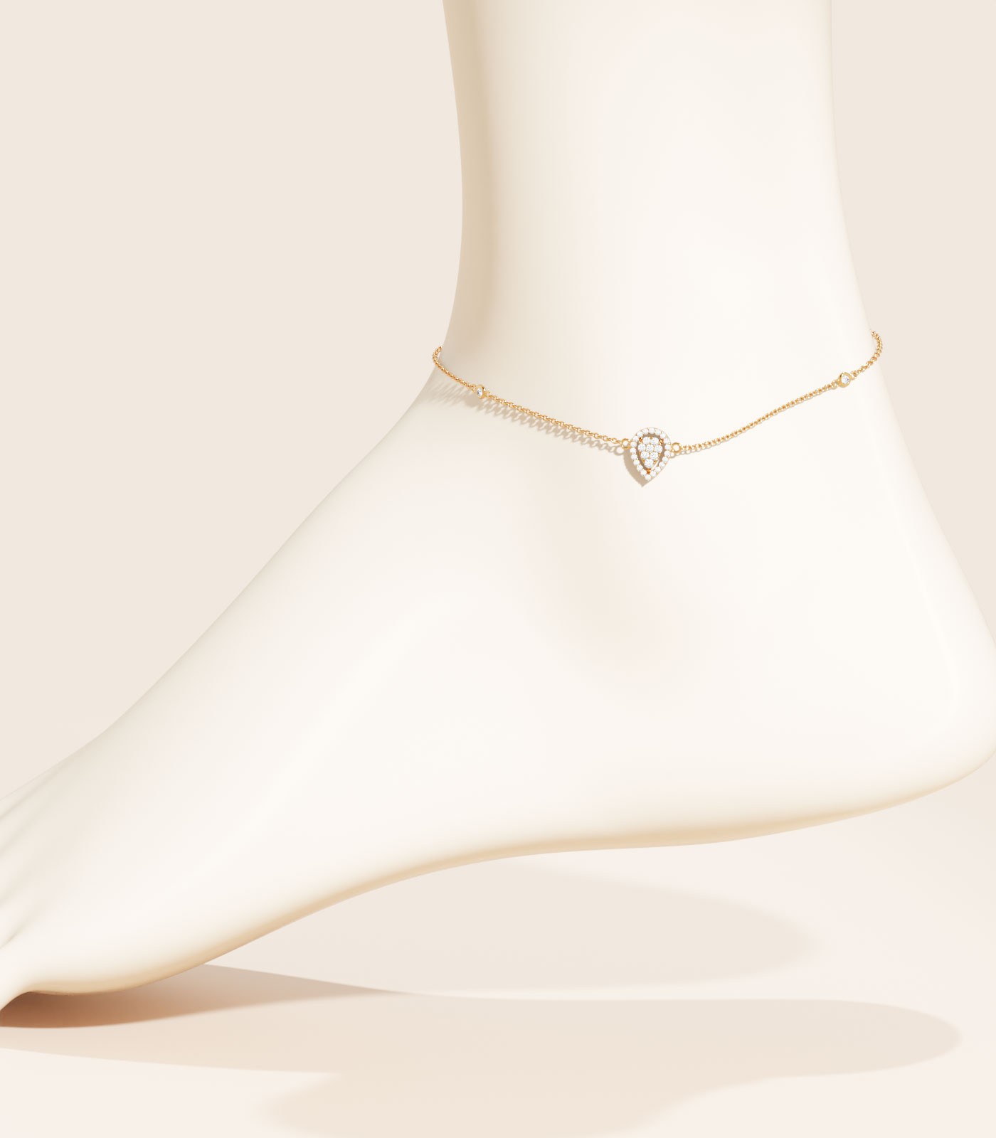 This 18k gold anklet features a dainty leaf-shaped charm, meticulously embedded with sparkling diamonds to add a touch of glimmer to this piece. The elegant design of this Varudai anklet makes it a versatile piece for day-to-night wear.