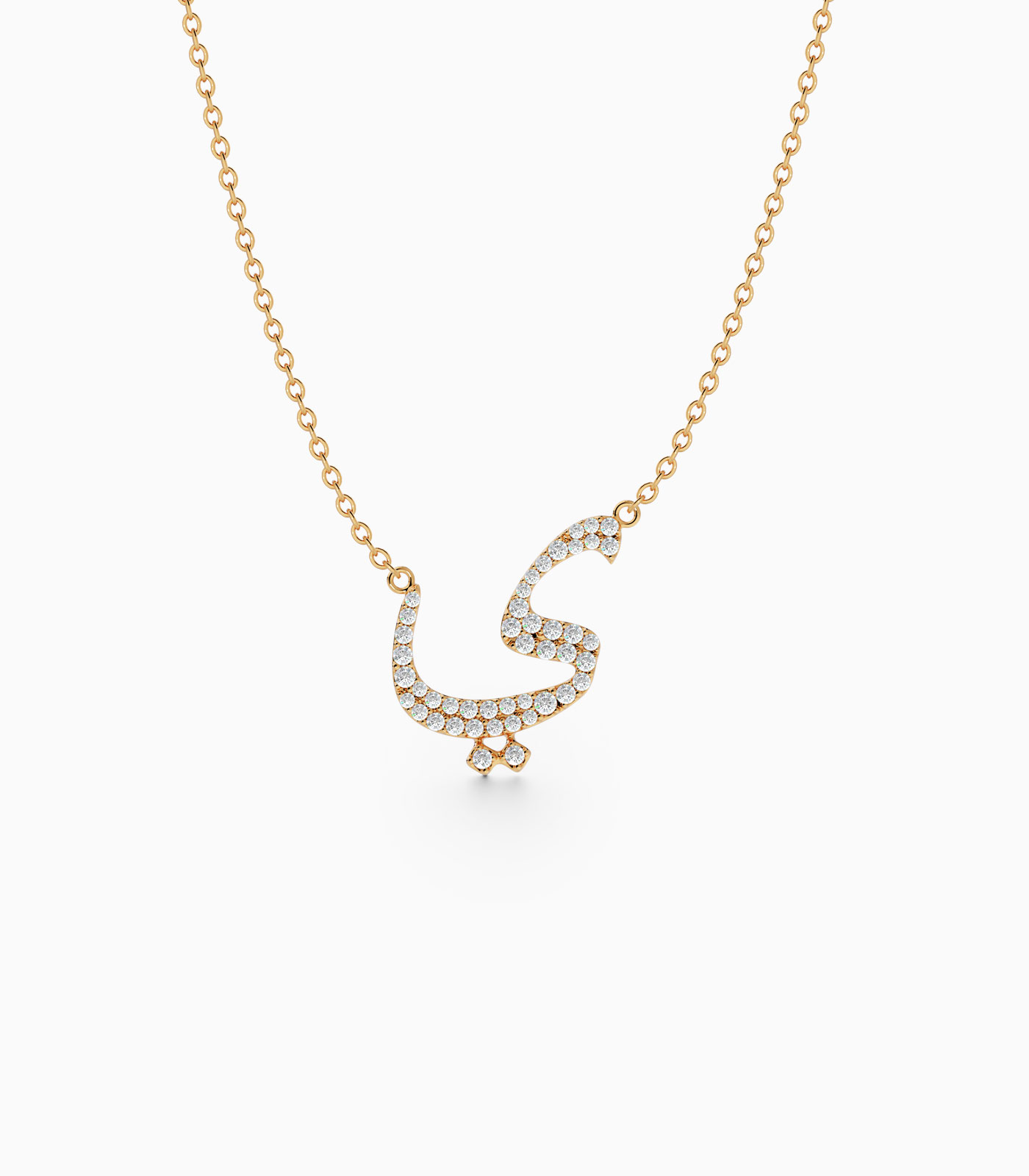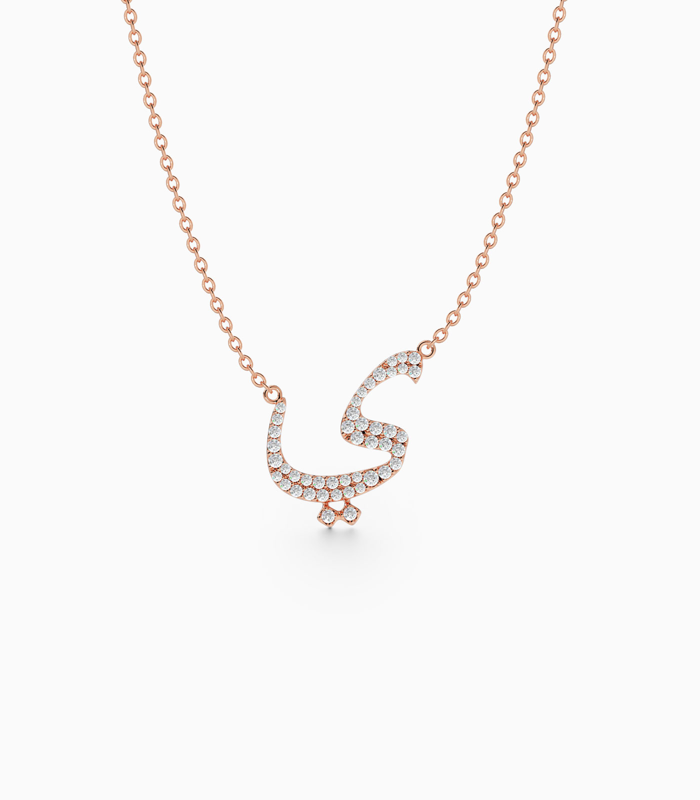 Add a unique touch of beauty to your collection with this Arabic Letter Necklace featuring the letter “ي “ (Yaa). This beautifully crafted piece in 18k gold, embellished with natural, sparkling diamonds, is sure to impress.