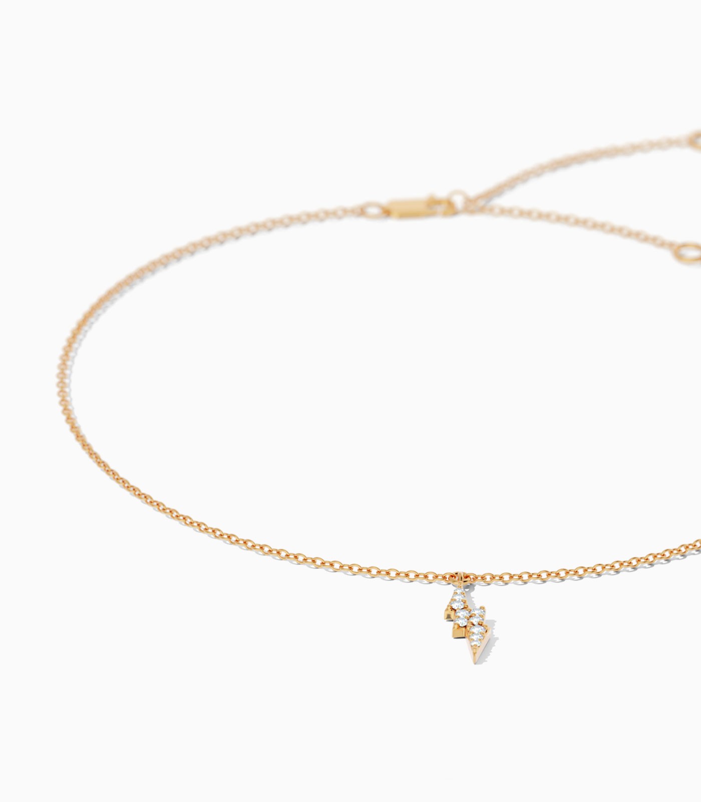 Striking and contemporary, this 18k gold anklet features a bold lightning bolt charm, pavé-set with dazzling diamonds, offering a modern twist on classic elegance. Want to jazz up that party look? This anklet would be perfect!