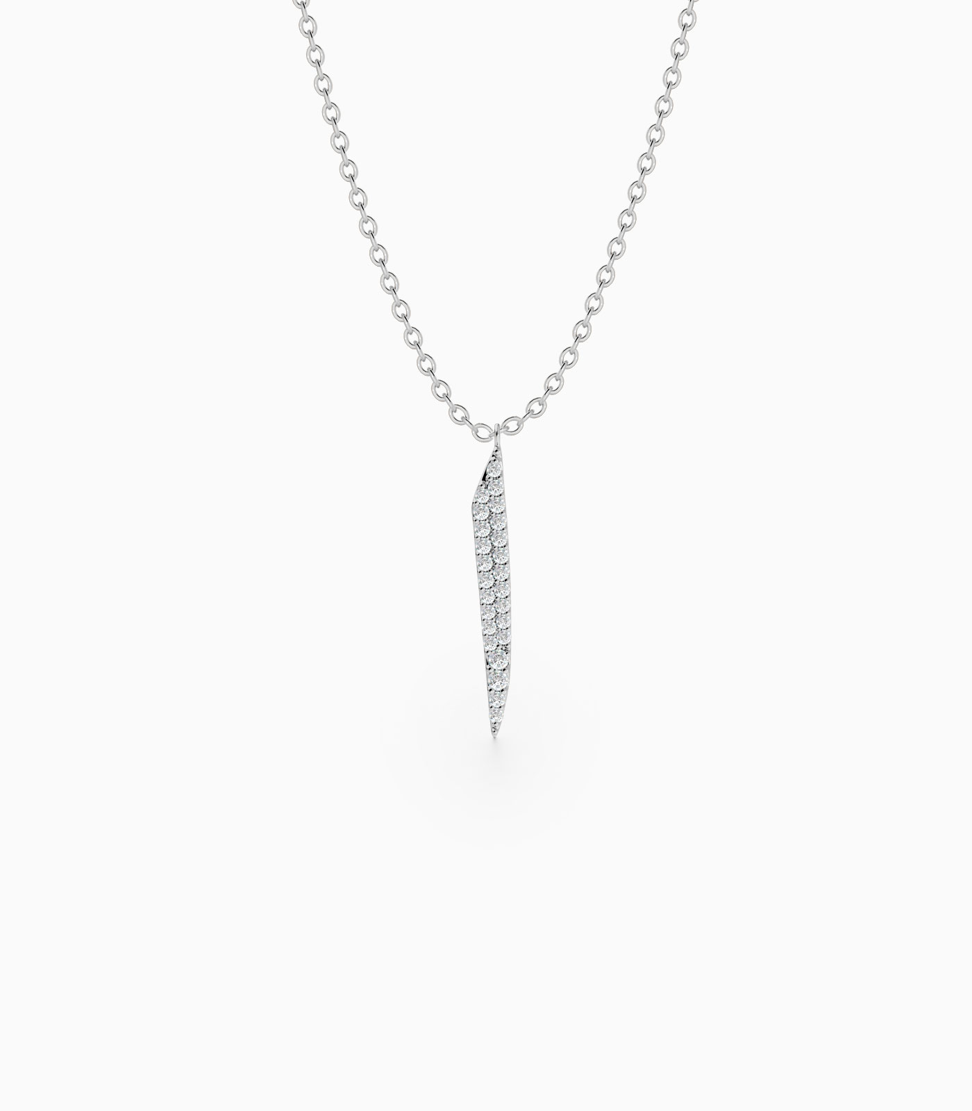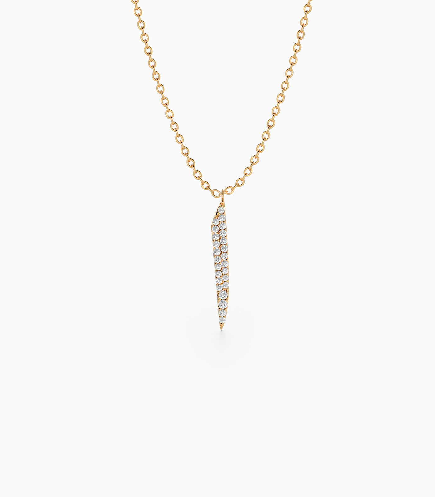 Sleek and simple, this Arabic Letter Necklace featuring “ا” (Alif) is perfect for those who appreciate minimalist design with a touch of tradition. The 18k gold pendant is encrusted with diamonds, providing a radiant sparkle that gives a luxurious feeling.