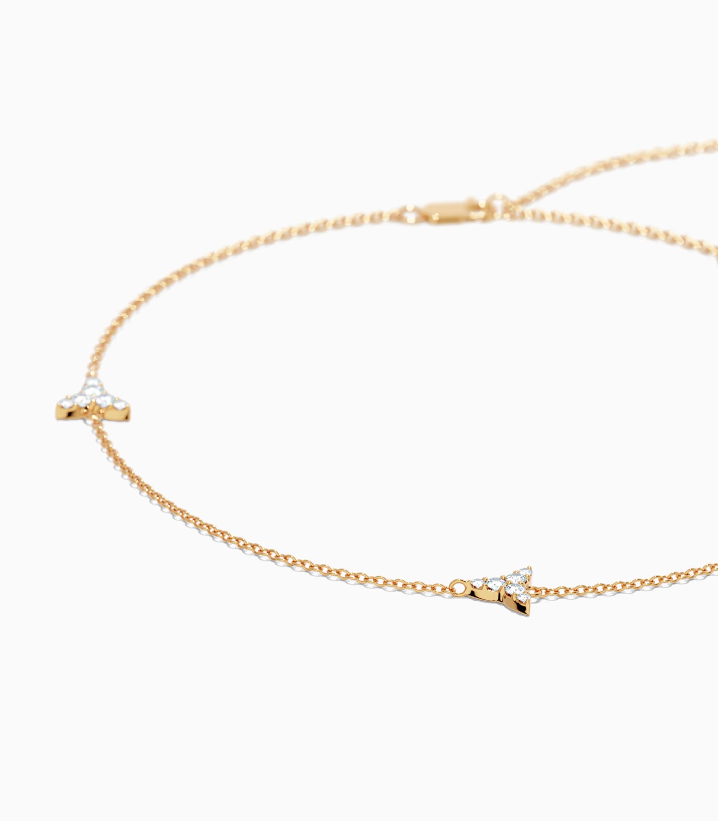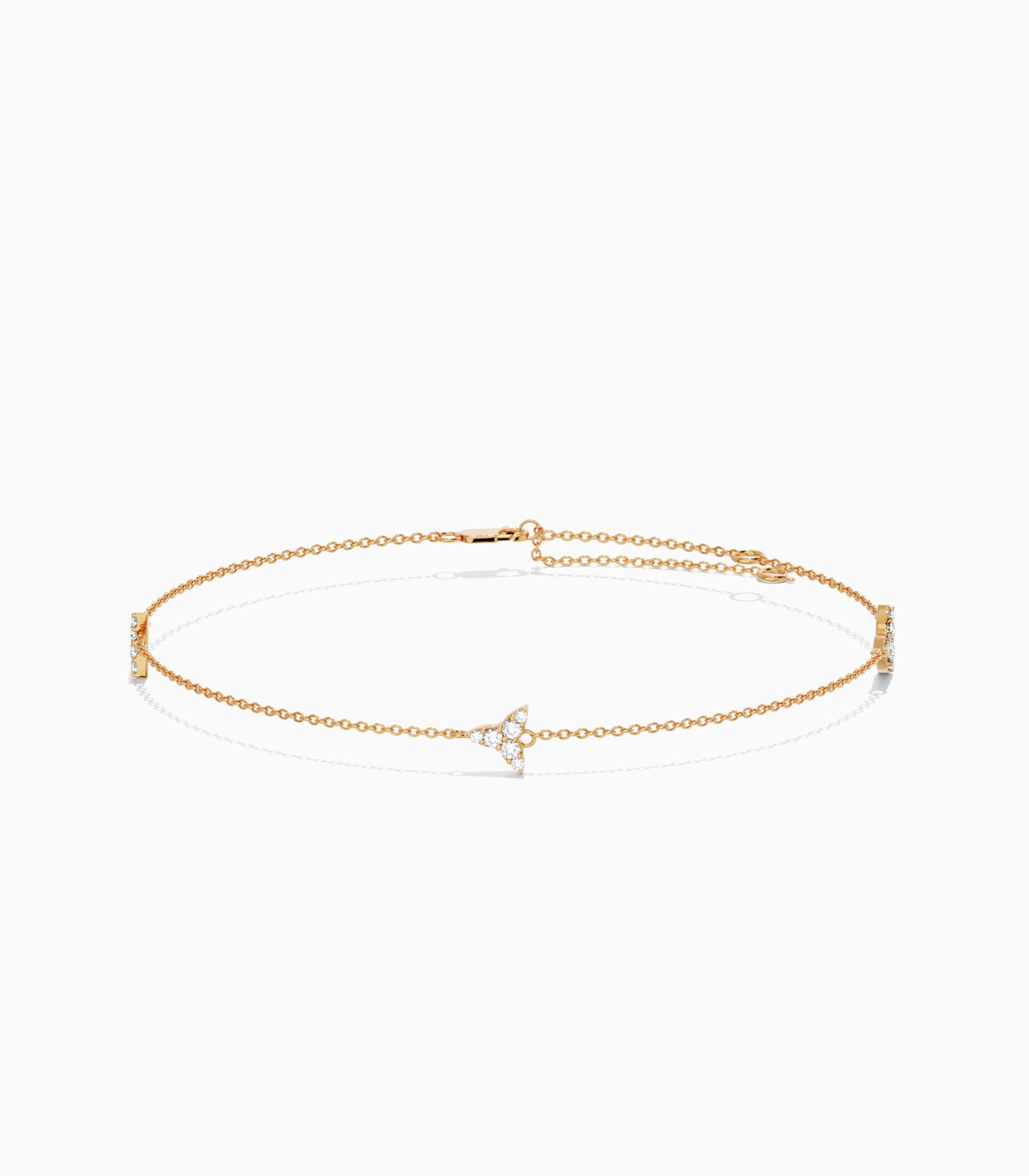 Crafted with a minimalist touch, this 18k gold anklet features a few clusters of diamonds on a sleek cable chain, perfect for a subtle shimmer. This Varudai anklet can be your go-to accessory for any look or ensemble be it day or night.
