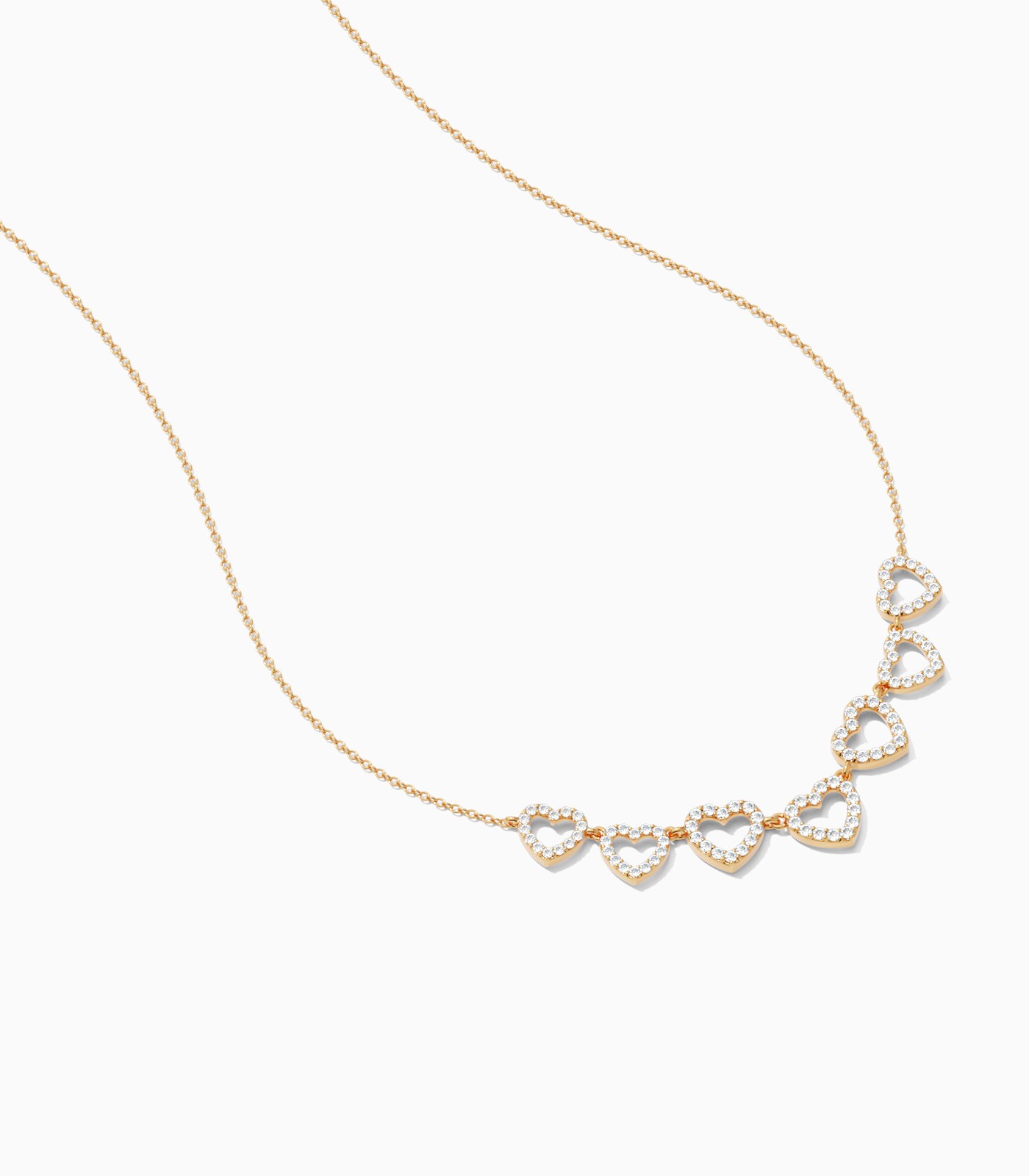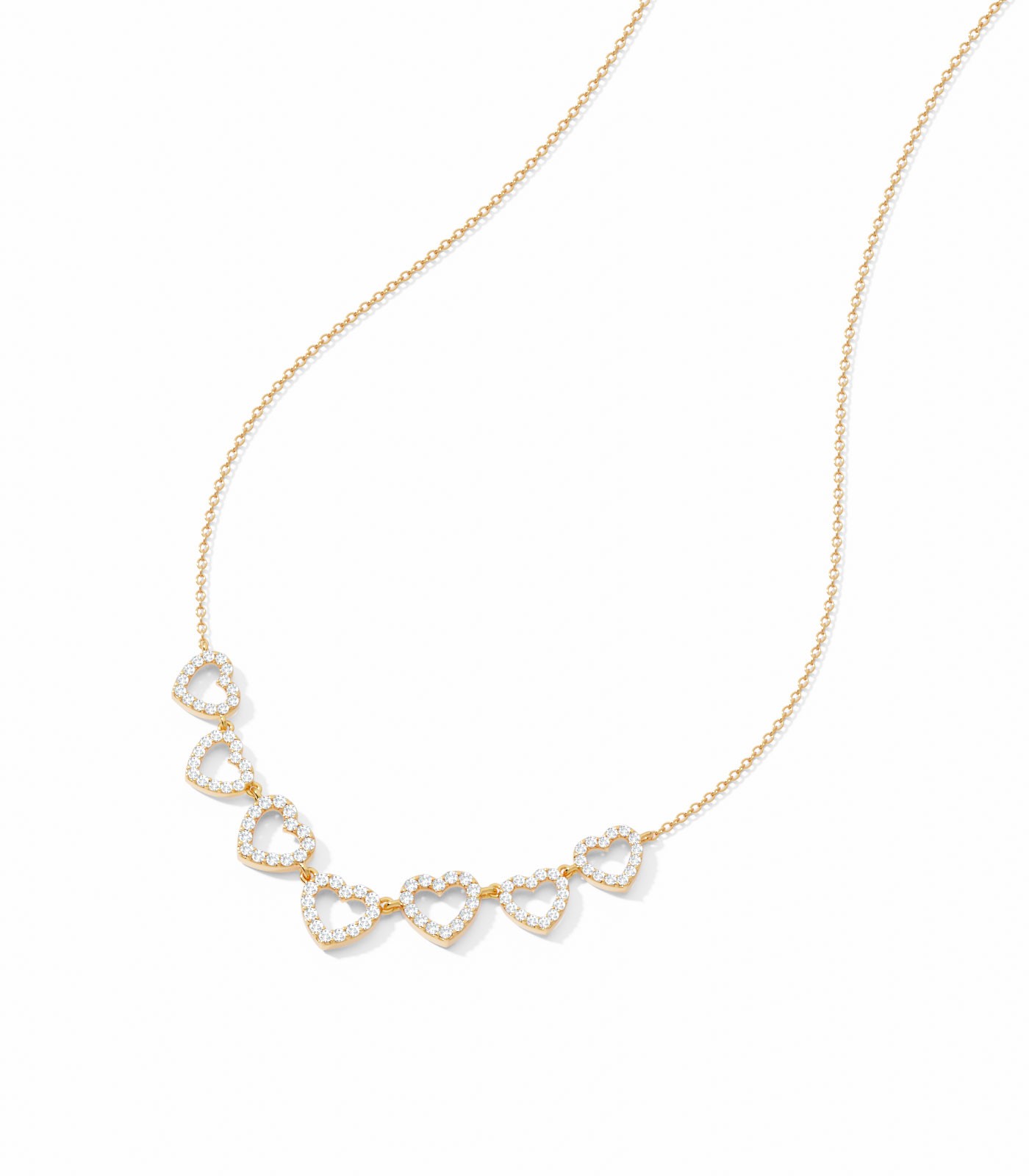 Want an uberchic minimal necklace that will never go out of style? If yes, then you’d love this 18k gold necklace featuring a twinkling trail of diamond-studded tiny hearts — a piece designed to be cherished forever!