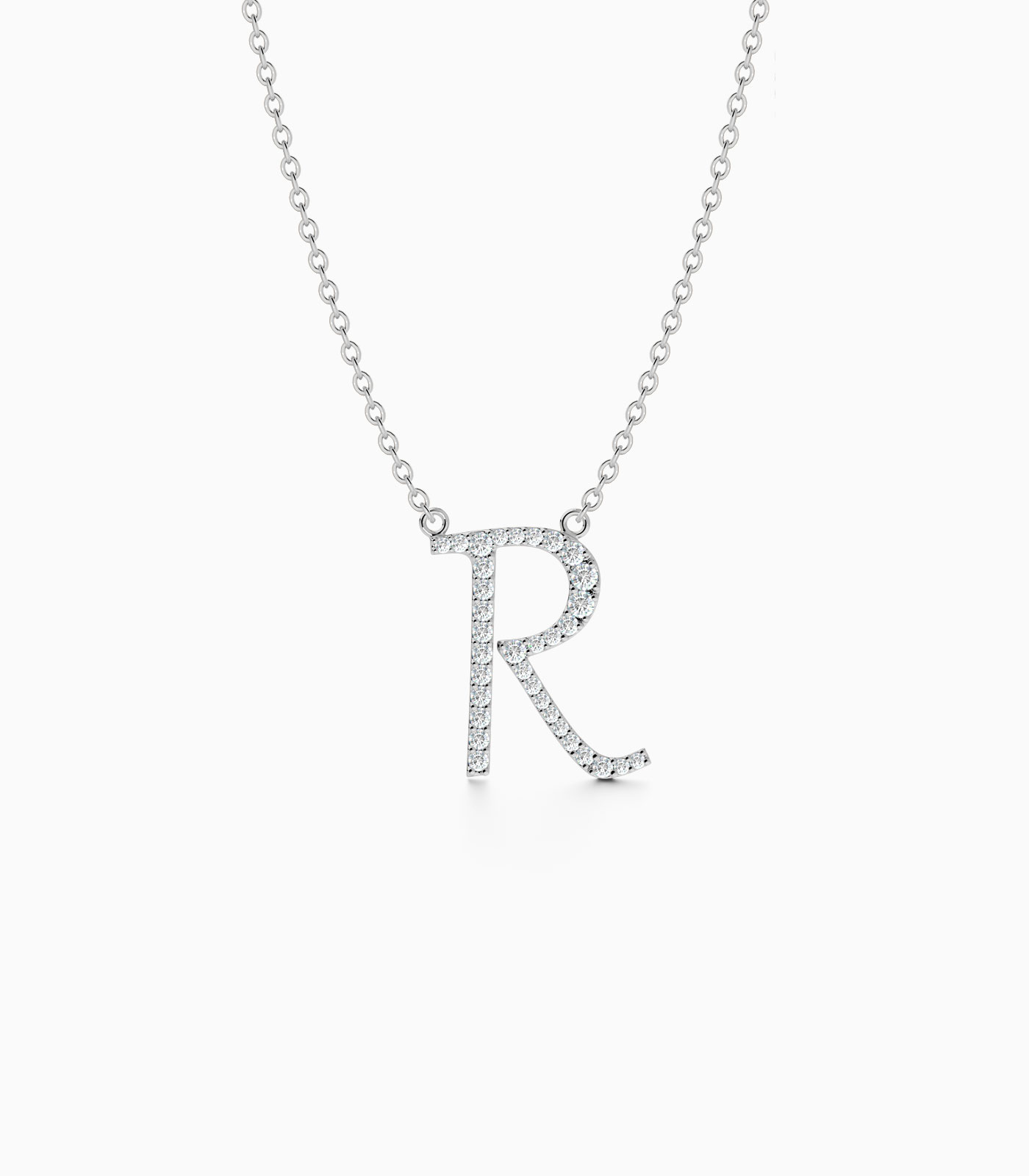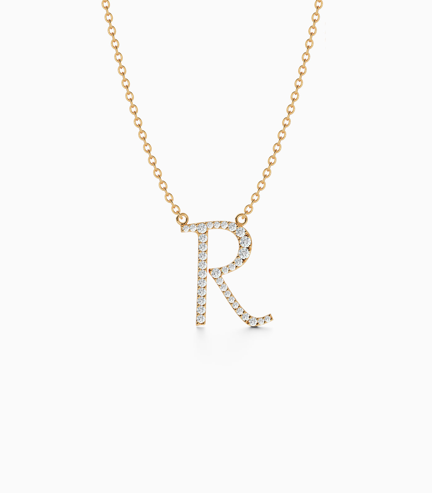 Radiate elegance with our Letter “R” Initial Necklace. This luxurious 18k gold necklace, embellished with brilliant natural diamonds, is a beautiful way to express your individuality.