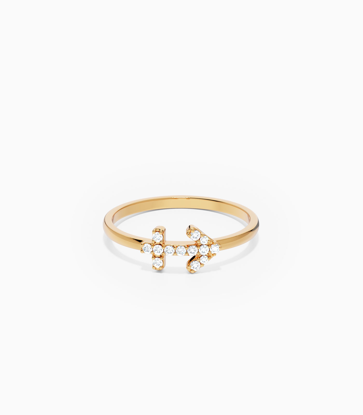 Fuel your intellect and adventurous spirit with our Sagittarius Zodiac Sign Ring. Crafted with pure 18K gold, this band features the Sagittarius symbol lined with sparkling diamonds. This ring is a perfect companion for those who seek new experiences and knowledge.