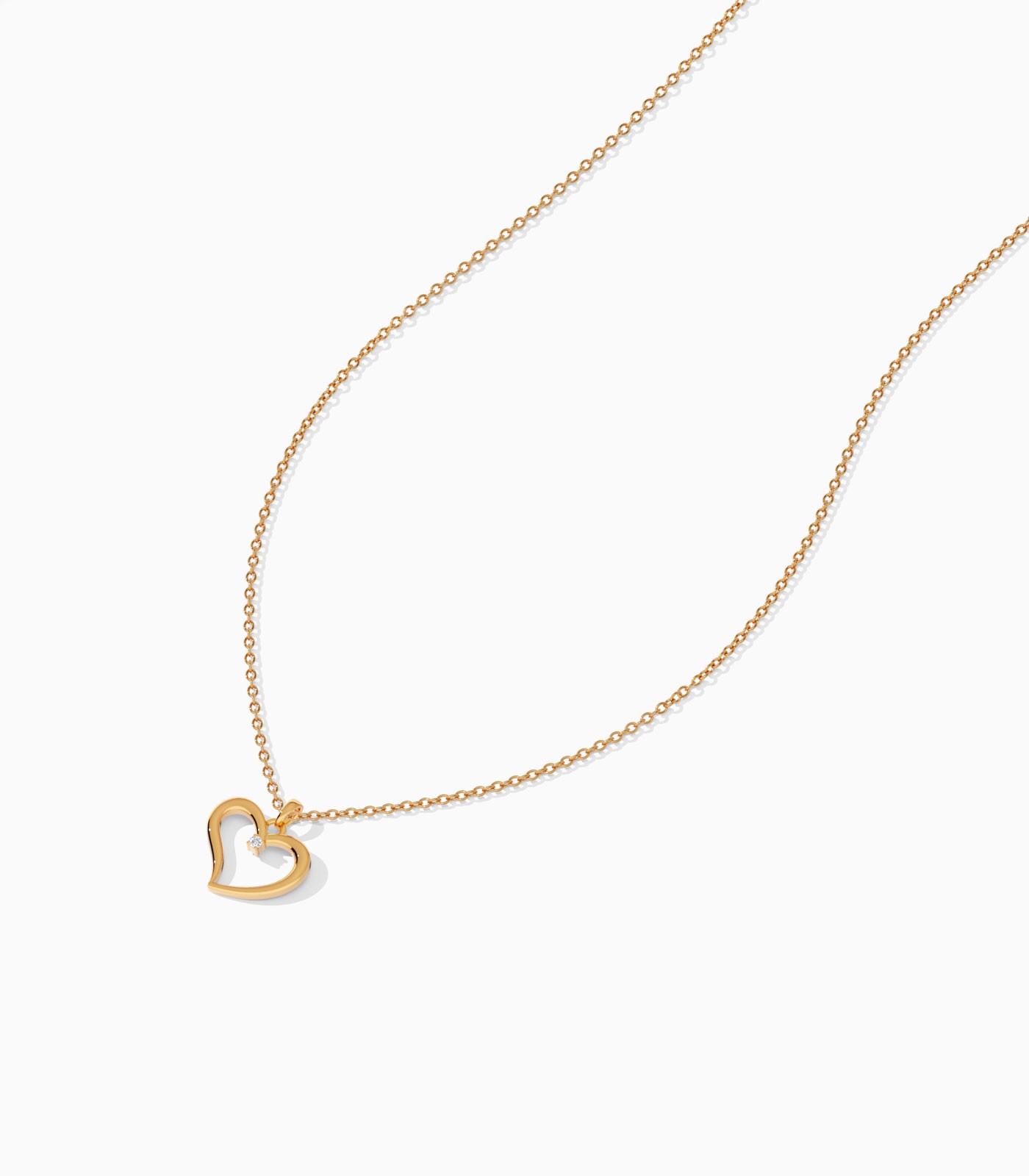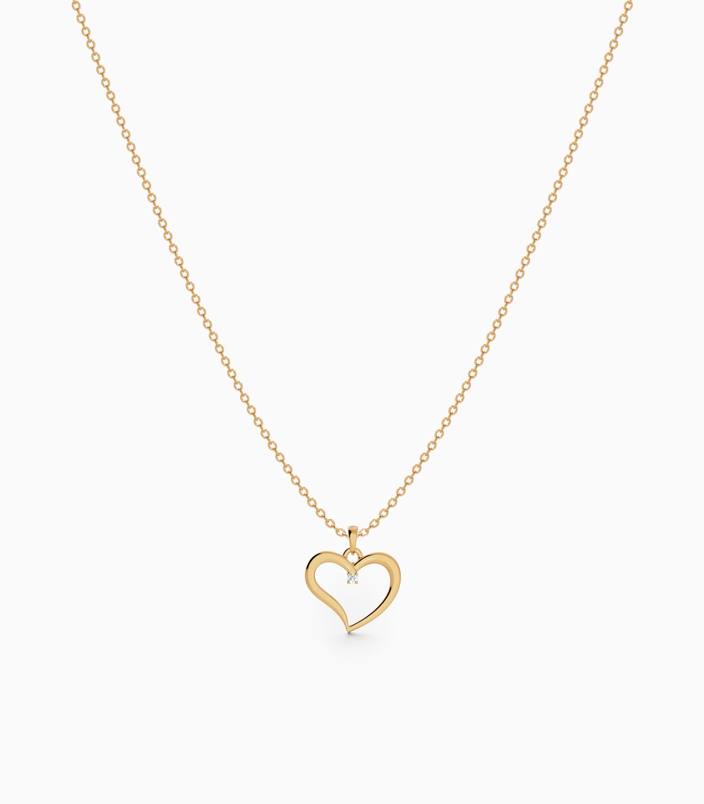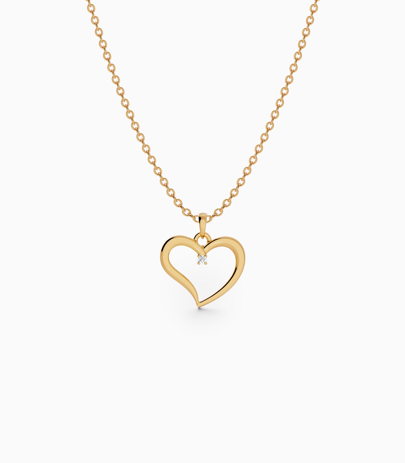A charming asymmetrical heart, accentuated by a single sparkling diamond nestled at the upper corner, this 18k gold pendant is perfect for a chic look. Paired with a thin cable chain, this can be a beautiful gift for yourself or for someone special.