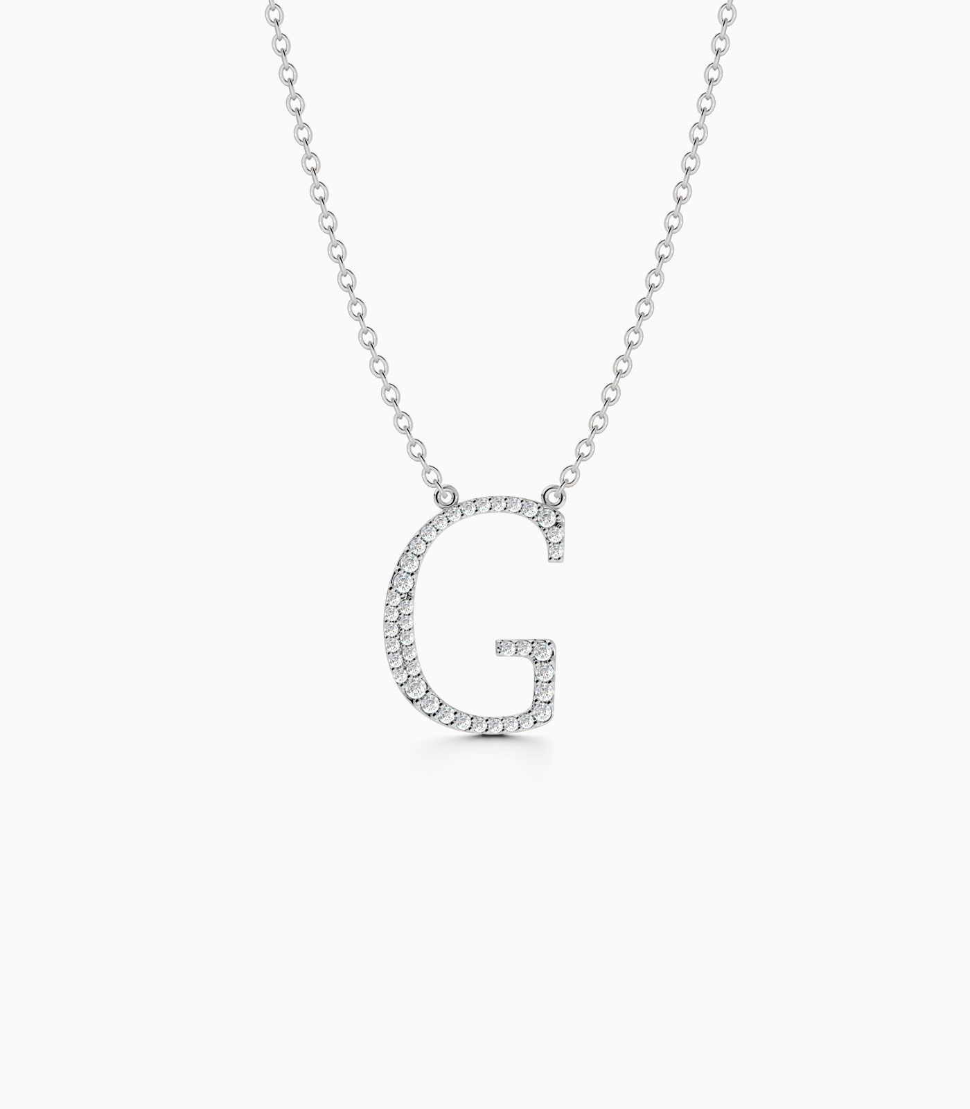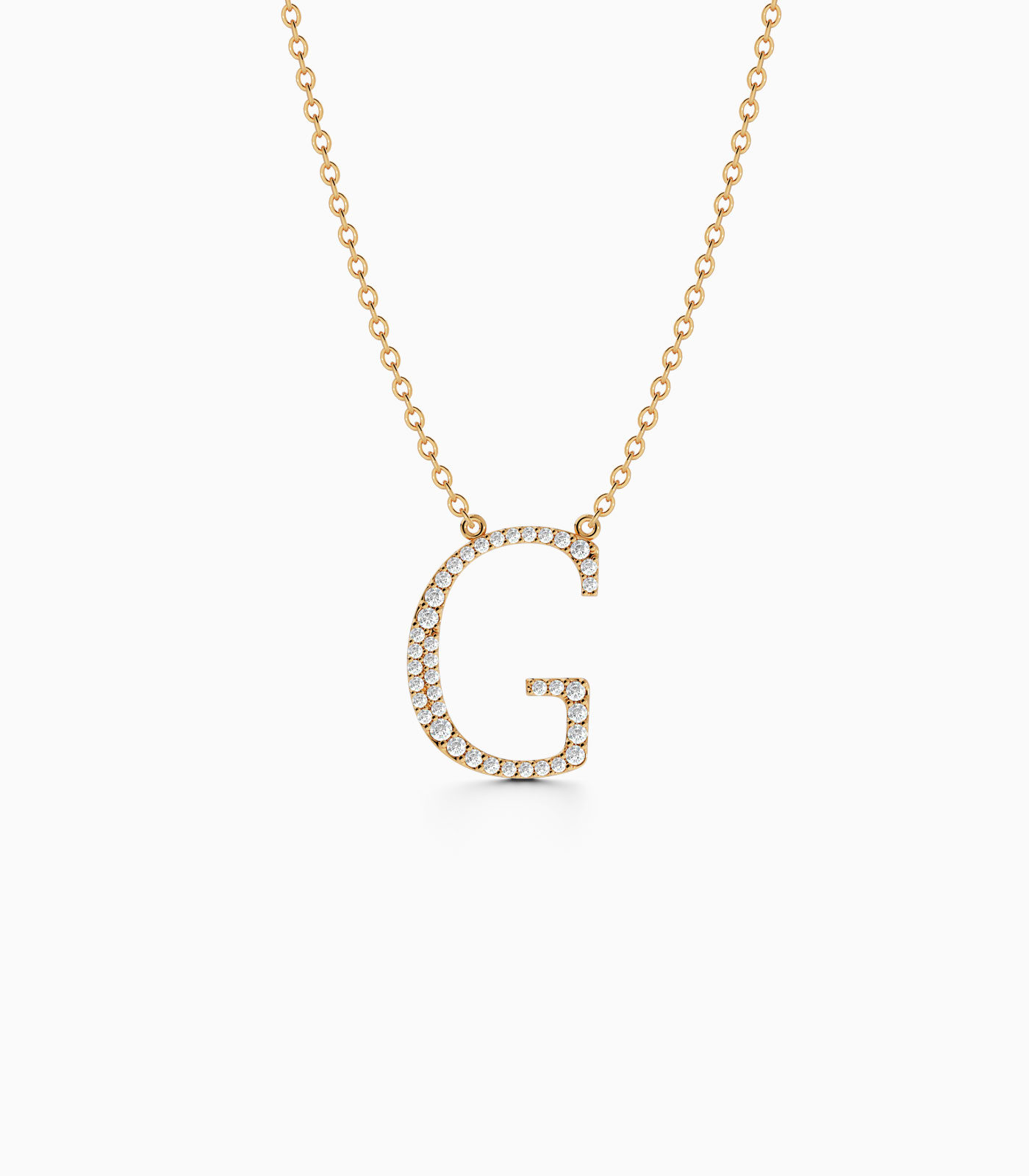 Celebrate your individuality with our gorgeous Initial “G” Necklace. This 18k gold necklace is bedazzled with brilliant diamonds, offering a perfect blend of elegance and personal touch.