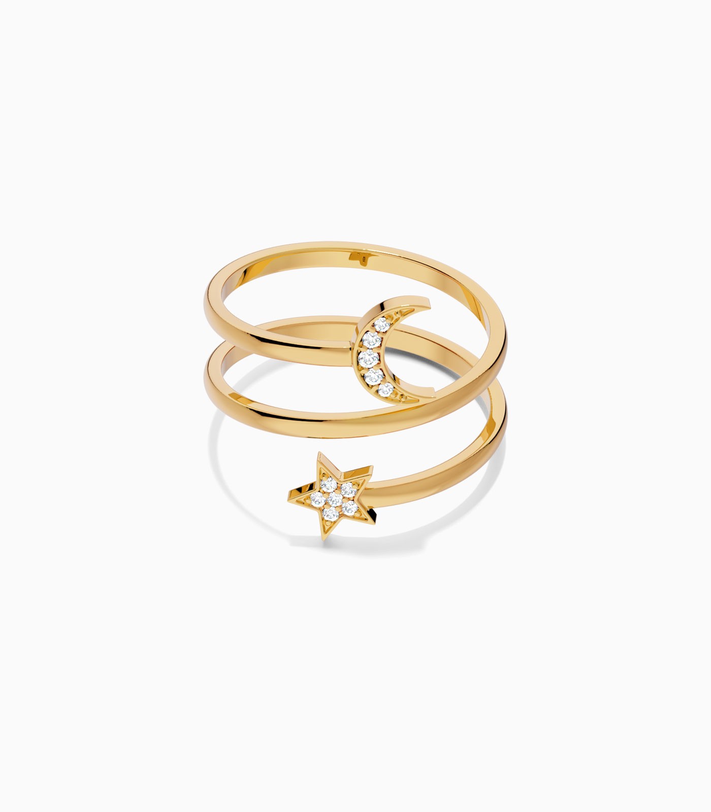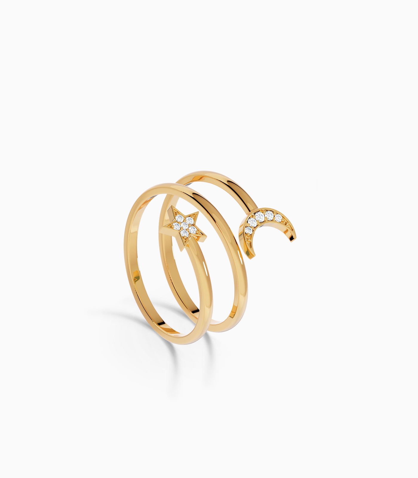 Spiral Moon-Star Diamond Ring