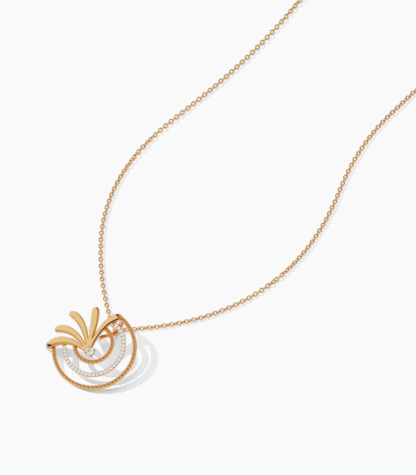 Handcrafted with solid 18k gold, this pendant brings a playful twist to luxury with its delicate swirl design, accented with a diamond-encrusted semi-circular loop and a tiny central diamond for just the right amount of sparkle. It comes with a sleek cable chain.