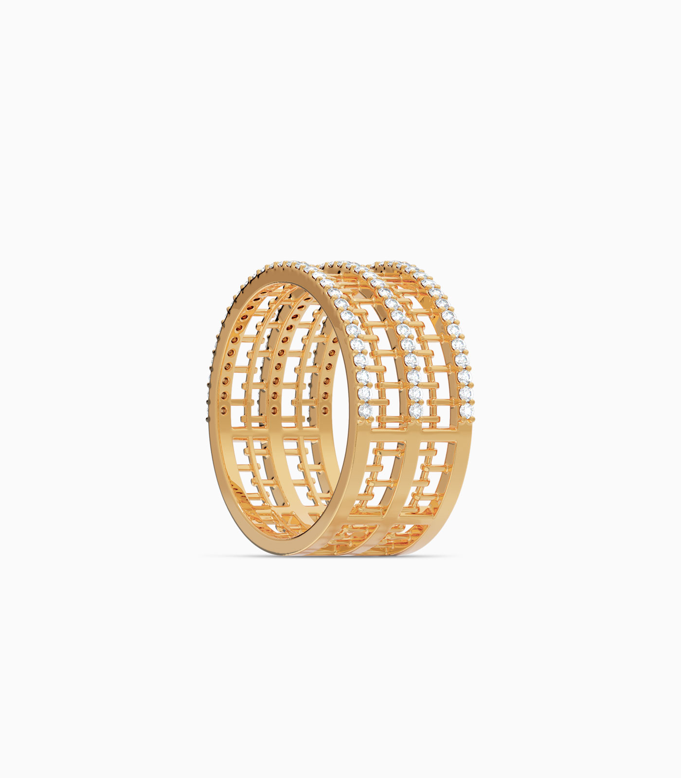 Three Row Pavé Diamond Wide Ring Band